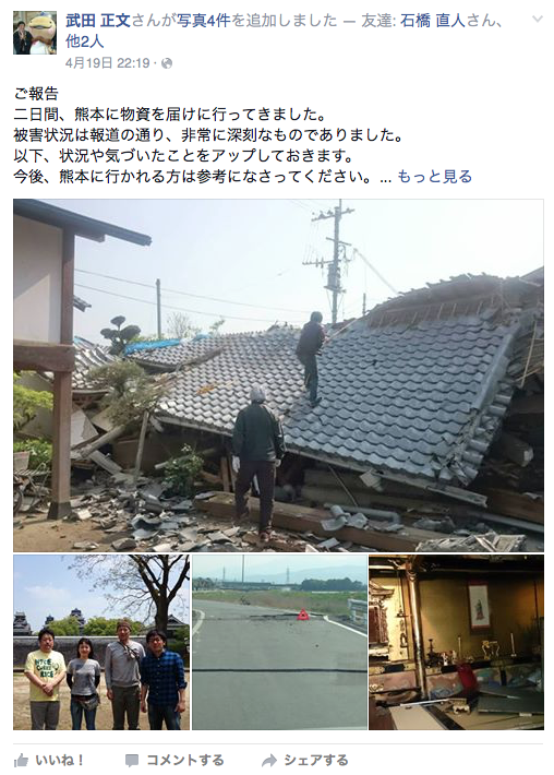 今、熊本、大分の方々のことを思うと何かできることはないかと模索しています。私たちにできることがあれば、可能な限りお手伝いさせていただきたく思っております。